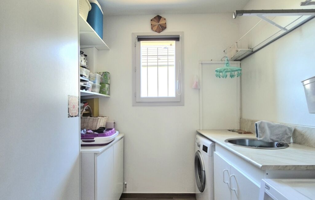 Un garage de 19.00 avec espace de rangement au plafond et un deuxième espace buanderie complète l’ensemble.
