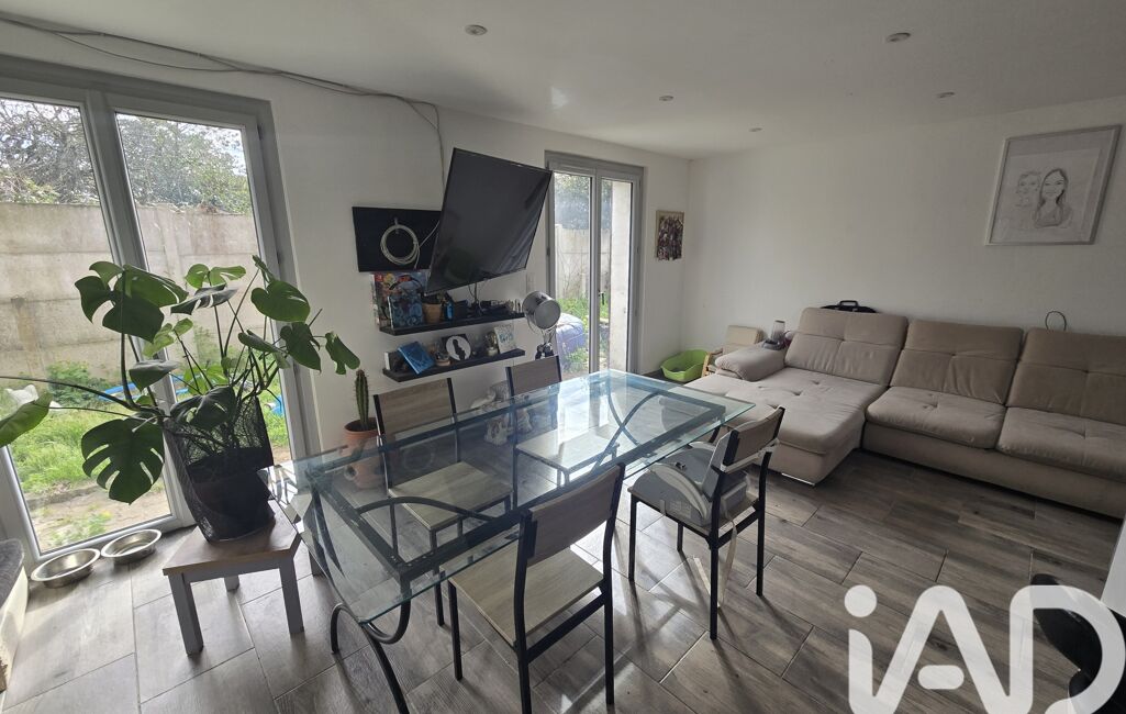 iad France - Vincent Dubois vous propose: Maison mitoyenne rénovée en partie de 95m2 composée au rez de chaussée d'une entrée qui dessert une GRAND salon séjour avec une cuisine ouverte équipée et aménagée, une buanderie et un WC. À l'étage, un couloir qui dessert 3 chambres, un bureau, un WC et une salle d'eau avec une douche à l'italienne. Le tout sur un terrain clos de 330m2 avec un garage non attenant. Chauffage avec radiateurs électriques, double vitrage récent, panneaux solaires et tout à l'égout.
