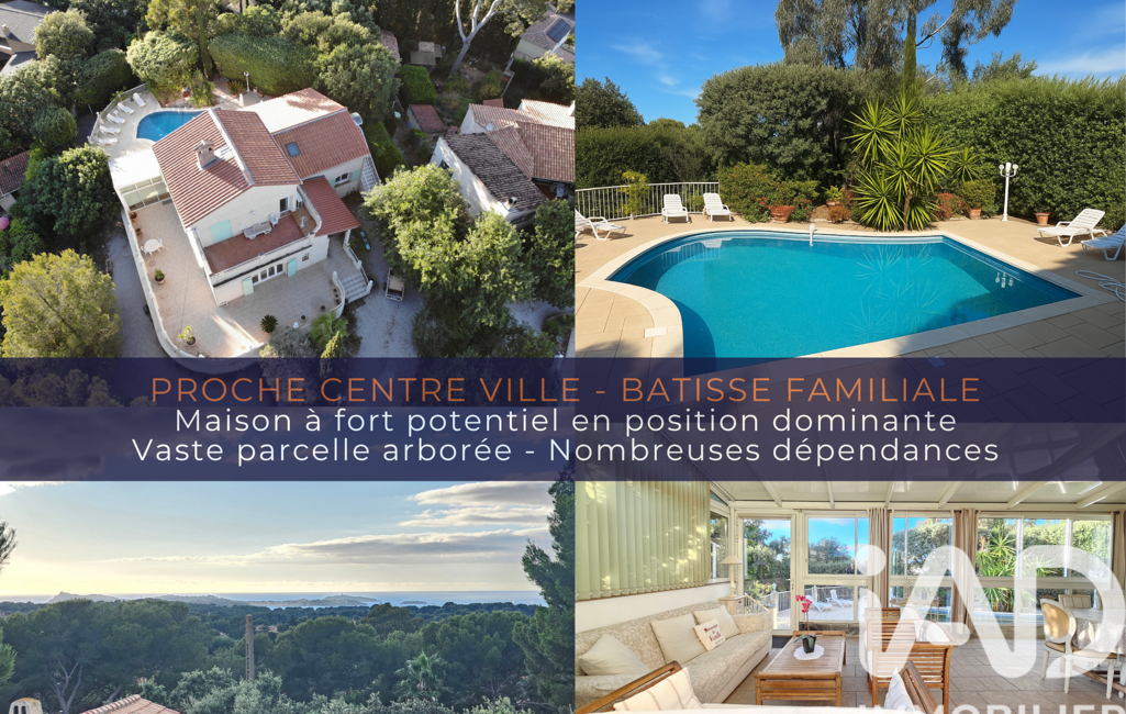 + Situation : Sa situation dominante et son vaste terrain arboré en font un bien rare au calme mais à proximité immédiate du centre-ville de Six-Fours. La vue y est vraiment préservée sur la nature et les monts environnants depuis chacune des expositions.