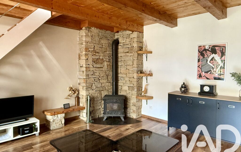 La maison principale s’organise autour d’un sas d’entrée avec dressing menant à une belle pièce de vie chaleureuse, comprenant un salon avec poêle à bois et une cuisine équipée et meublée. Des rangements sous escalier ainsi qu’un système de chauffage au sol viennent compléter cet espace. Un demi-palier dessert une salle d’eau avec double vasque et coin buanderie, ainsi qu’un WC indépendant. À l’étage, un palier avec placards intégrés distribue trois chambres confortables aux surfaces variées, idéales pour une vie de famille.
