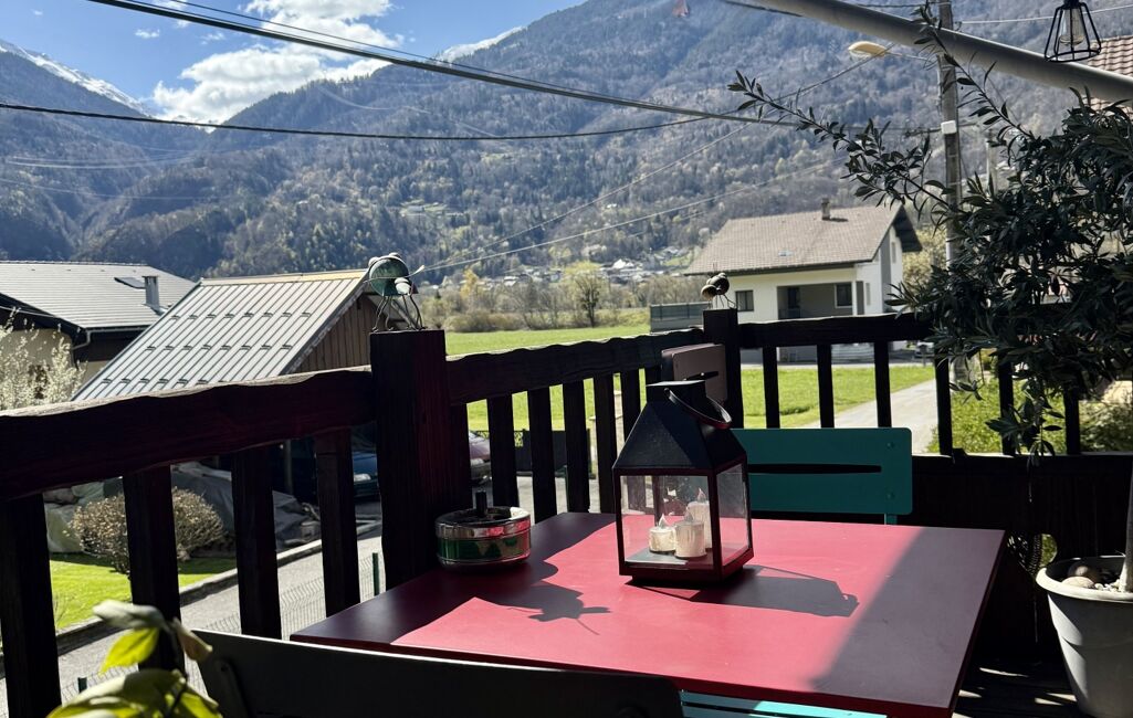 iad France - Marjolaine Miceli vous propose: Situé dans le charmant hameau de Langon, entre Moûtiers et Albertville, découvrez cet ensemble immobilier rare à la vente, composé d’une maison principale et d’un appartement indépendant, offrant de nombreuses possibilités d’usage.