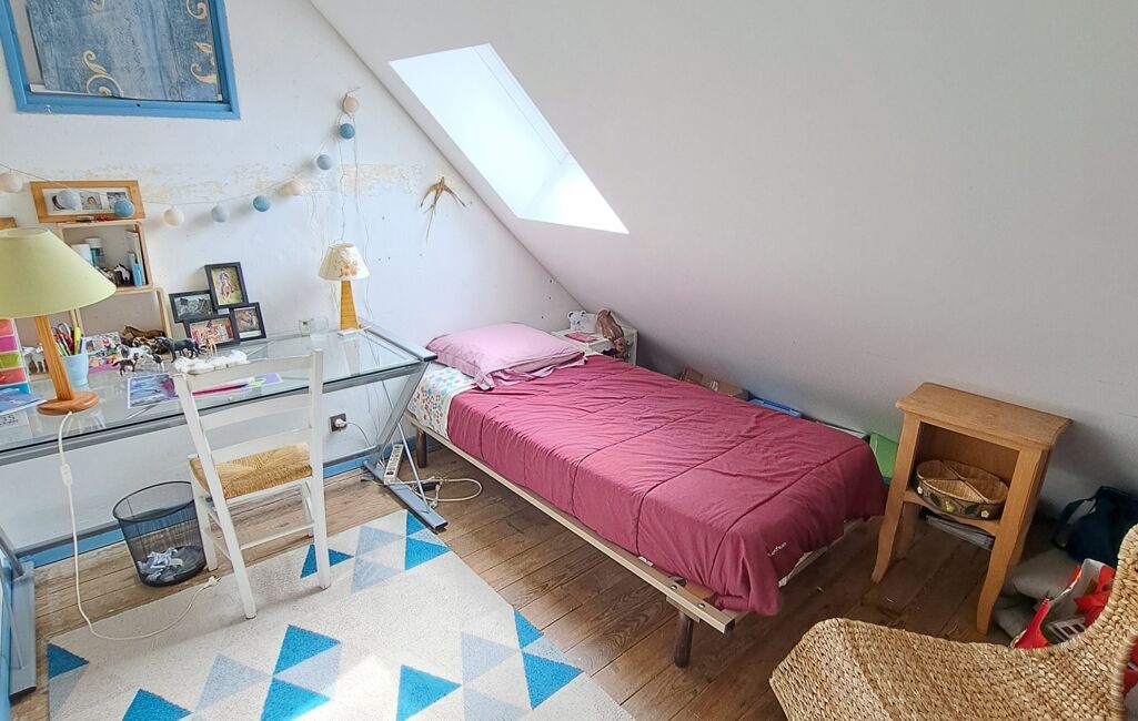 A l'étage une mezzanine avec coin bureau et chambre d'appoint.