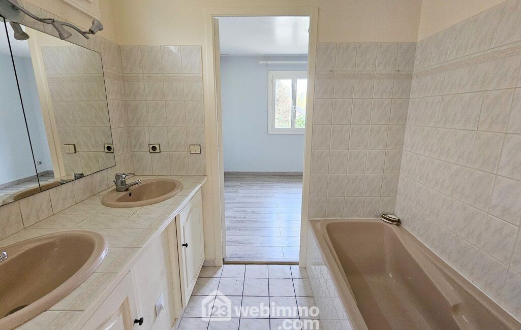 L'espace nuit se compose de trois chambres, dont deux avec placards intégrés, offrant à chacun son espace personnel. Une salle de bains communicante entre deux chambres crée un agencement fluide et pratique, tandis qu'une seconde salle d'eau et un WC séparé viennent parfaire le confort de la maison.