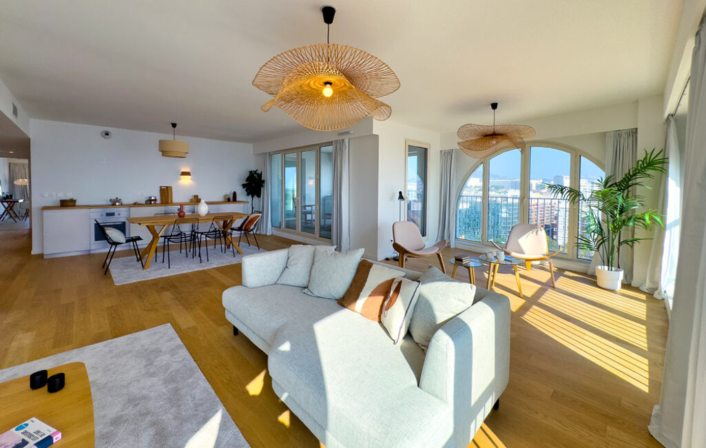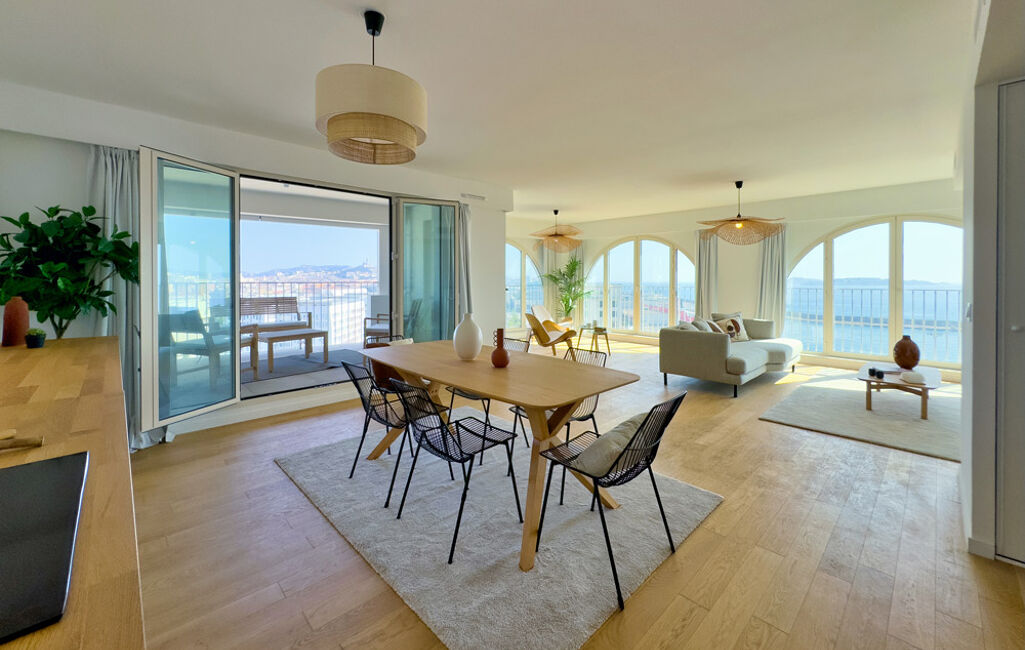 Casaloft immobilier vous présente en exclusivité ce superbe appartement 4 pièces traversant de 125,49 m² (loi carrez), baigné de lumière et offrant une triple exposition (E/S/O), face aux Docks avec vue sur la mer, la ville et les collines.
