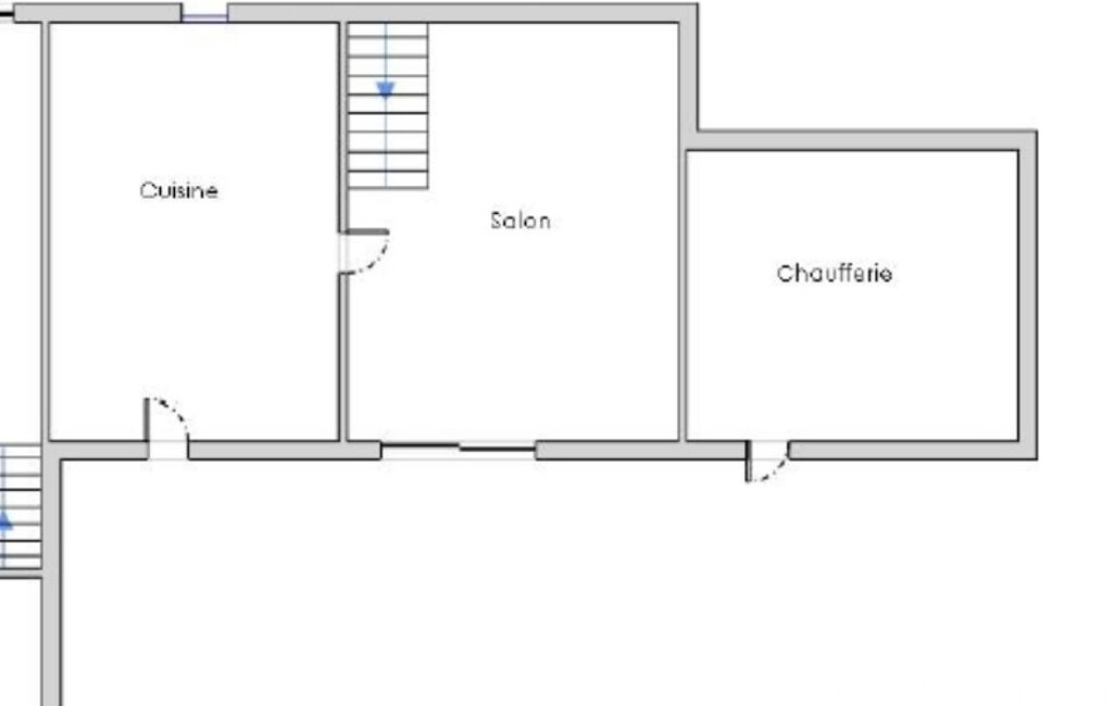 L’entrée ouvre sur la cuisine de 23m² environ, puis sur le séjour de 25 m² environ.