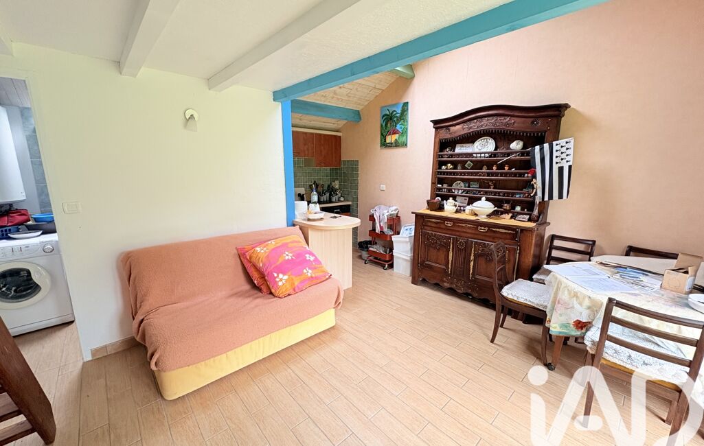 La parcelle accueille déjà une maison de 23 m² habitables, comprenant une pièce de vie avec cuisine ouverte, une salle d’eau ainsi qu’une chambre en mezzanine. Un cellier complète l’ensemble.