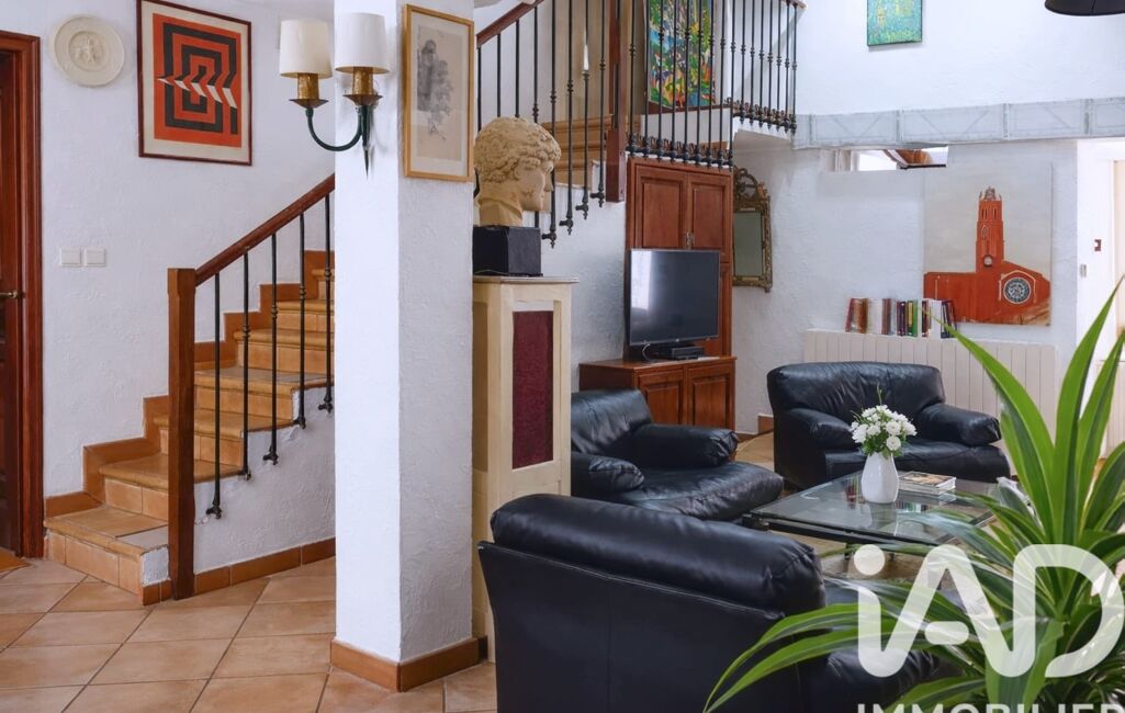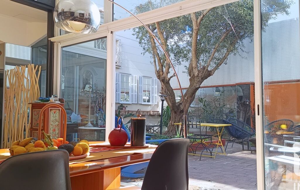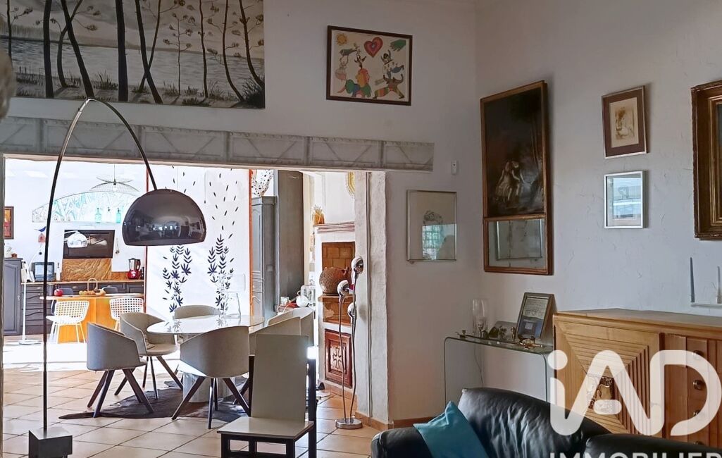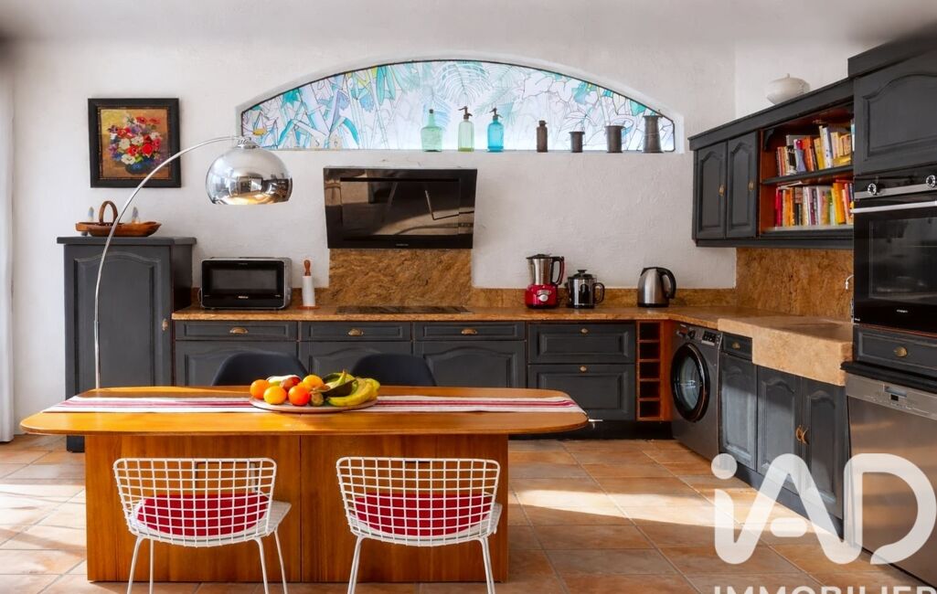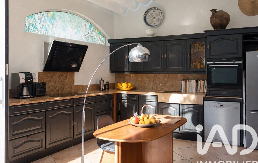 Les volumes sont généreux, la lumière omniprésente. Le séjour s’ouvre sur une cuisine installée dans une véranda, créant un espace de vie singulier, baigné de clarté et plein de caractère.