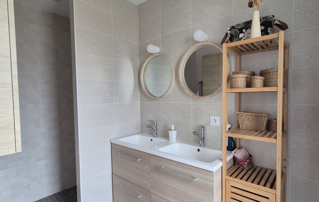 À l’étage, la maison offre trois chambres confortables, une salle de bain ainsi qu’un WC indépendant, parfaitement adaptés à une vie de famille.