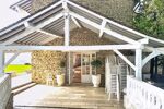 ERP 5 pour ce lieu idéal pour des réceptions, cette vaste longère, construite dans les année 70, déploie 360m², 800m2 de terrasse engazonnée (résistance 400kg/m²) et 1000m2 (hauteur sous plafond 2,80m) de surfaces utiles en rez-de-jardin permettant une zone dédiée à l’espace fête.