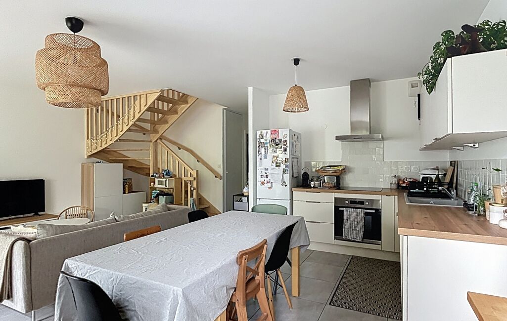 Son agencement se compose ainsi : Au rez-de-chaussée , un séjour avec cuisine ouverte aménagée et équipée exposé SUD/EST, une salle d'eau avec wc ainsi que de nombreux rangements.