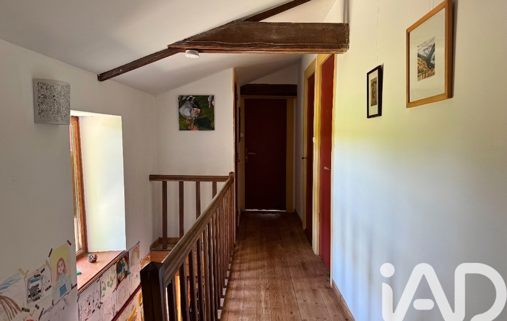 A l’étage : un couloir dessert 3 chambres sur parquet (18,12.5 et 11m²), un WC et une salle de bain.