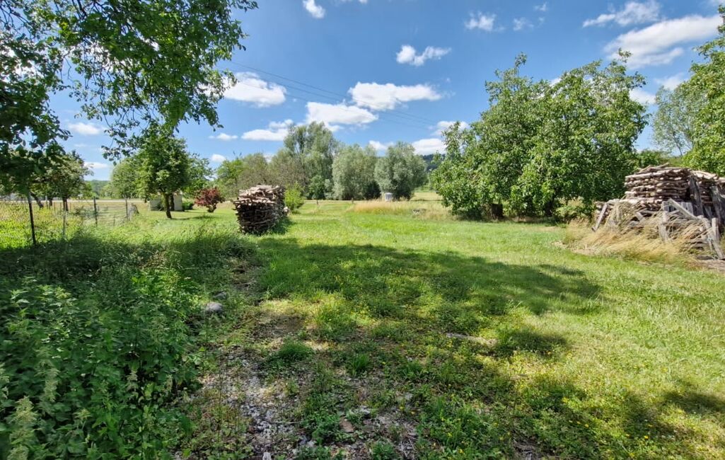 iad France - Bernard Gamel vous propose: Sur un très beau terrain, une ancienne maison composée de 2 logements à rénover entièrement, avec au centre de la bâtisse une grange avec accès au terrain. Venez visiter et vous projeter dans ce bien au beau potentiel.