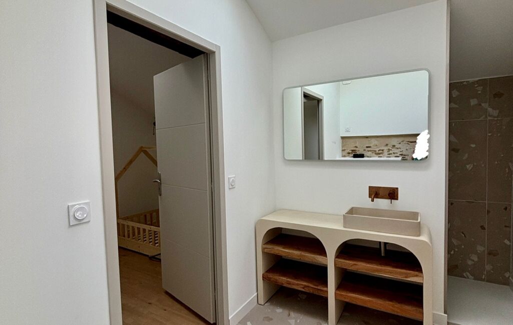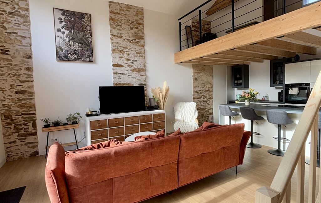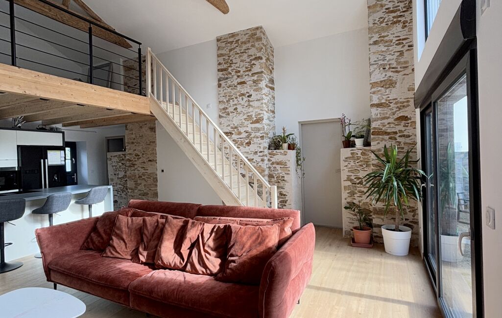 iad France - Stevy Boiteau vous propose: Située dans un environnement calme, cette grange entièrement rénovée en 2024 allie le charme de l’ancien et le confort moderne. Avec ses pierres apparentes et ses poutres en bois, elle offre une ambiance chaleureuse et authentique.