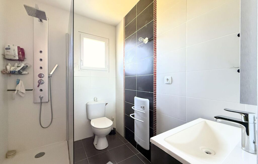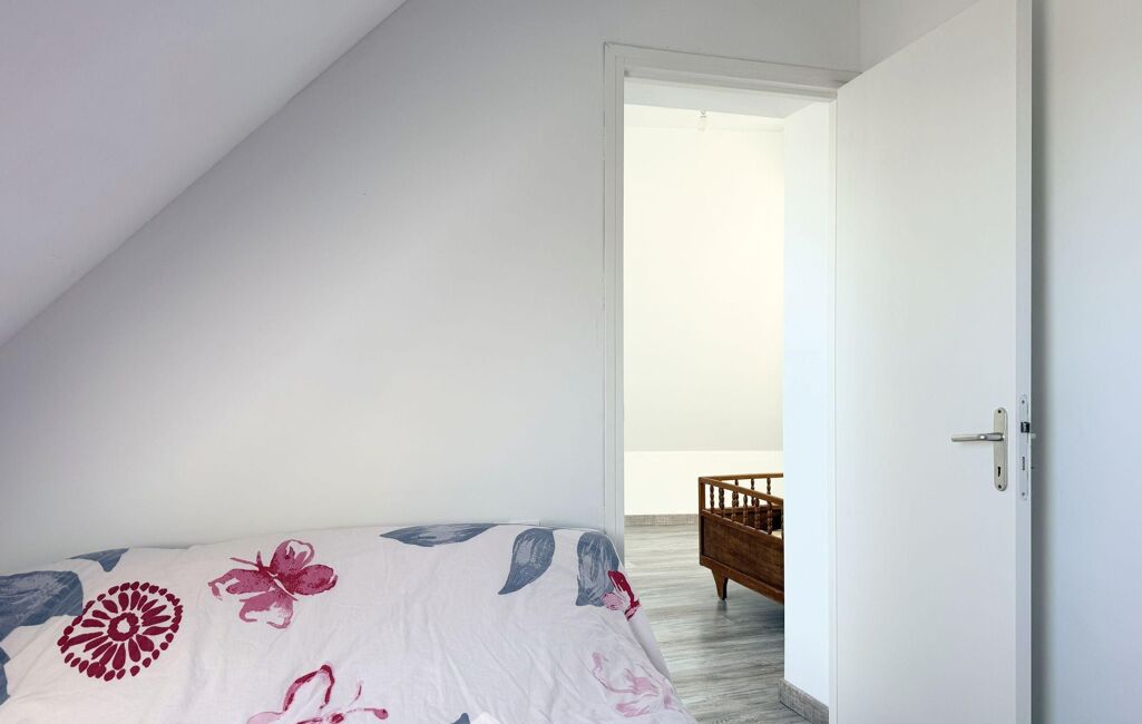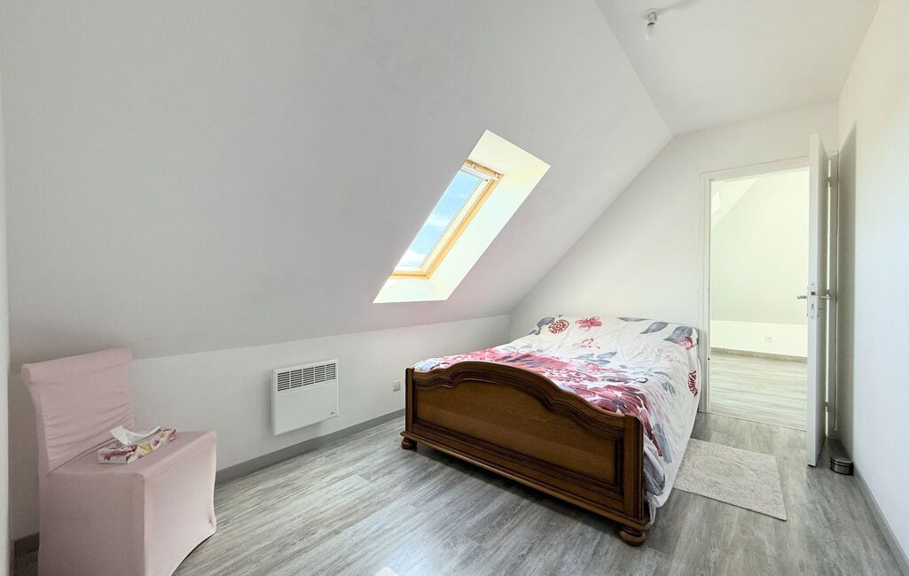 Accessible depuis la pièce de vie, l'espace nuit comprend une grande chambre de 13m2 habitables avec dressing et une salle de douche de 4m2 avec WC.
