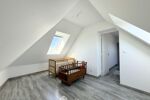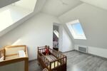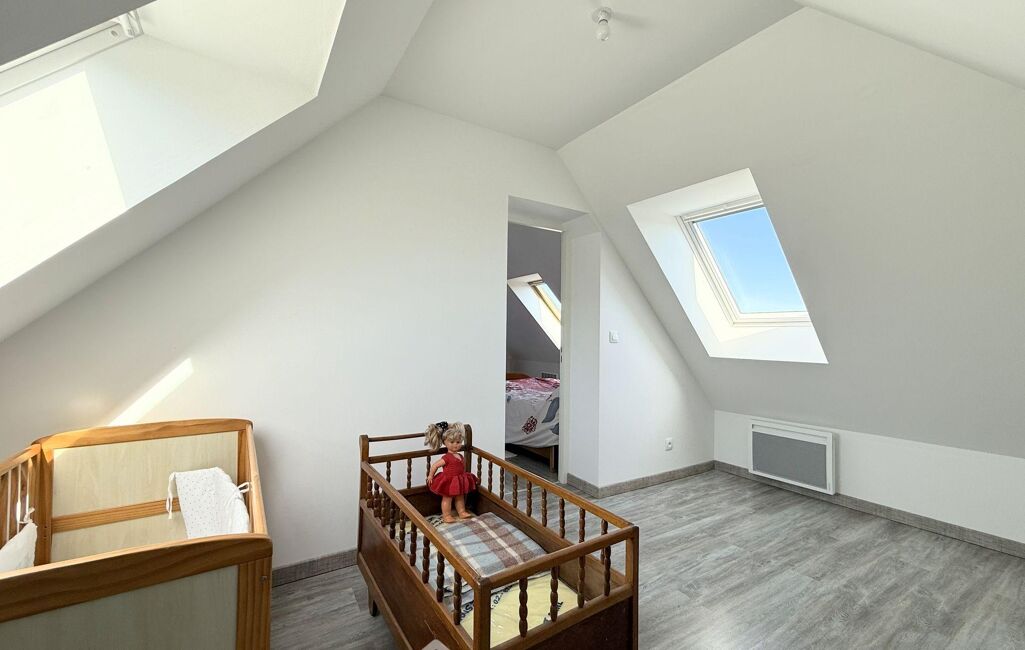 À l'étage, le grand palier / bureau dessert 4 chambres dont une en enfilade, et leurs dimensions généreuses vont de 11 à 25 m2 au sol. Ce niveau comprend également une grande salle de bains de 8m2 avec WC.
