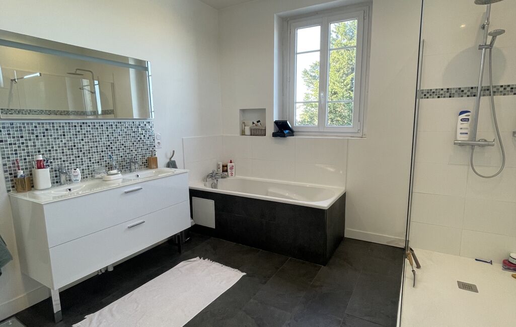Au rez-de-chaussée, une pièce de vie avec poêle et une cuisine, aménagée équipée offre un bel espace ouvert, un WC avec coin buanderie et lave main. Au premier étage, un palier, un bureau, trois spacieuses, chambre avec placard et une salle de bain/salle d’eau avec WC. Au deuxième étage, une pièce palière, trois chambres dont une avec son espace dressing, une grande salle d’eau avec WC.