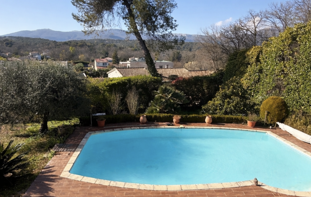 Située dans un environnement résidentiel recherché de Valbonne, au calme absolu, cette propriété offre un cadre de vie privilégié, sans vis-à-vis, avec une belle vue dégagée sur les collines environnantes.