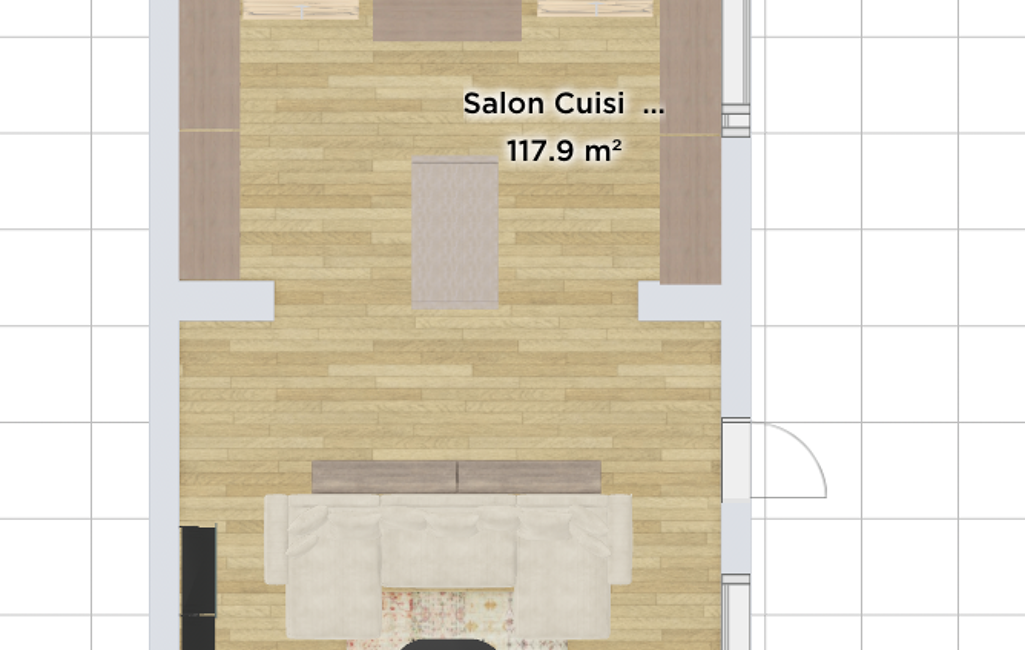 Sa configuration en L se compose d’une première pièce d’environ 50 m², puis d’un second espace d’environ 35 m² accessible par 2 à 3 marches. Une base simple à repenser selon votre projet.