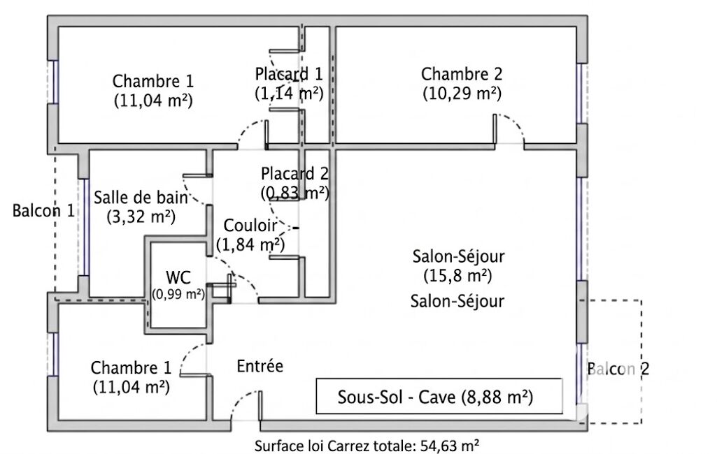 - Surface habitable : 54 m²
