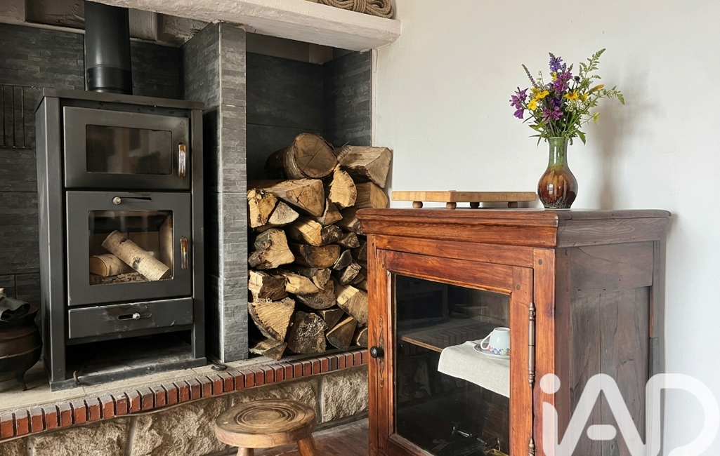 Système principal par poêle à bois (bûches) complété par des radiateurs électriques.