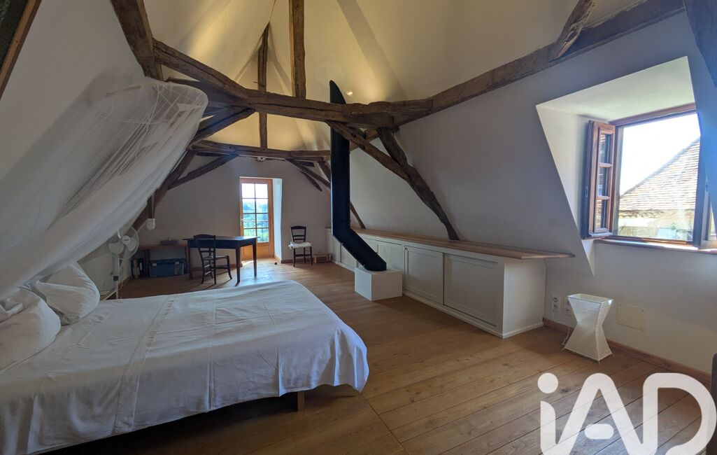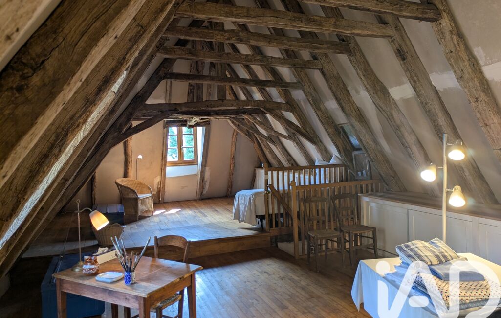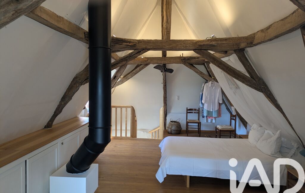 A l'étage : une chambre de 40 m2 avec parquet ancien d'origine et vue sur la campagne. Cave de 17 m2. VMC. Double charpente et isolation de la toiture. DPE E .