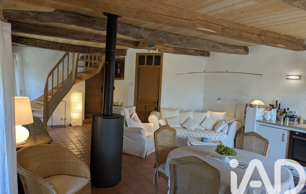 La première maison de 112 m2 propose en rez-de-chaussée un salon-salle à manger de 36 m2 avec poutres apparentes, un poêle à bois, une cuisine de 11 m2 avec un second poêle à bois, petite terrasse ombragée, une salle d'eau et espace buanderie de 11 m2, une chambre de 23 m2.