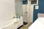 Elle se compose au rdc : d'une belle entrée lumineuse, un salon-séjour, une cuisine, une chambre de 15m2 , une salle de bains avec douche et baignoire et un WC séparé. Une cave semi-enterrée complète ce rdc.