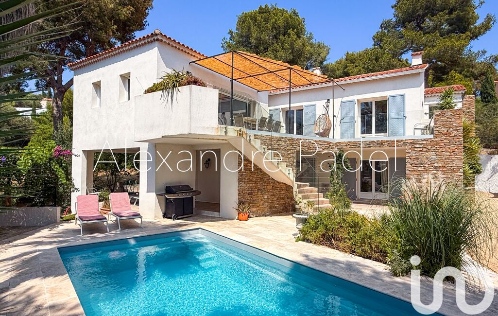 Une demeure d'exception de 270m2 à moins de 5 minutes du port et du centre de Carqueiranne, offrant un cadre de vie raffiné sur un vaste terrain de 1738m², entourée d'un jardin verdoyant et d'une piscine.