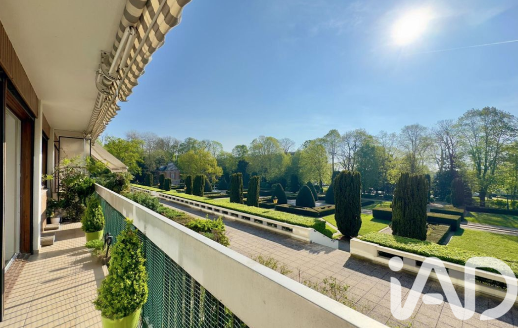 iad France - Beatrice Bailly vous propose: Appartement T4 de 84 m2sans vis ) vis, vue sur jardin à la française, avec un beau séjour double avec balcon sur la longueur, entrée avec rangement, cuisine indépendante, dégagement avec 2 dressings, deux chambres, salle de bain avec WC, débarras, cave, parking et local vélos.