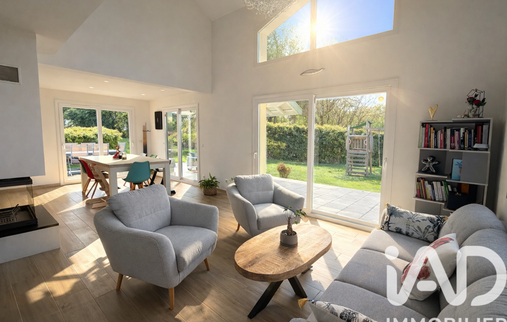 Au rez-de-chaussée, vous trouverez un vaste espace de vie lumineux de 50m2 avec cheminée ouvert sur une grande cuisine équipée Schmidt changée en 2021. Les grandes baies vitrées offrent une luminosité naturelle et une vue agréable sur le jardin et la piscine.