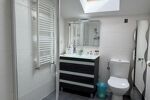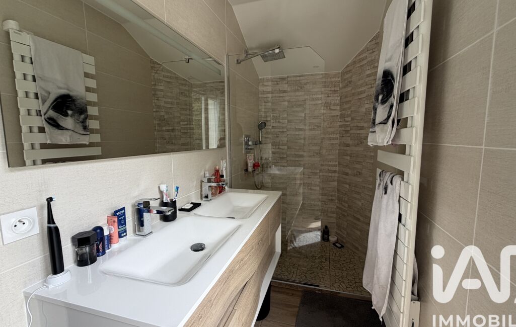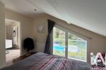 À l'étage, une vaste mezzanine pouvant faire office de salon tv ou bureau ainsi que 3 chambres chacune avec leur propre salle de bain et wc dont une en suite parentale avec son dressing.