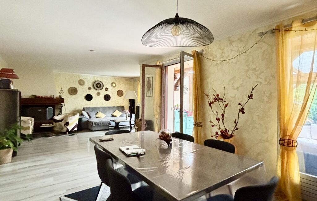Dès l’entrée, vous serez séduit par une belle pièce de vie lumineuse comprenant un grand séjour chaleureux, agrémenté d’une cheminée fonctionnelle, parfait pour vos moments de convivialité. Une véranda cosy prolonge cet espace et offre un véritable coin de détente baigné de lumière.