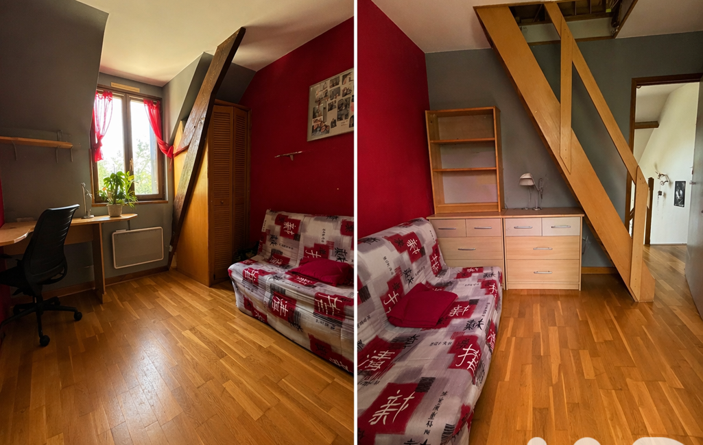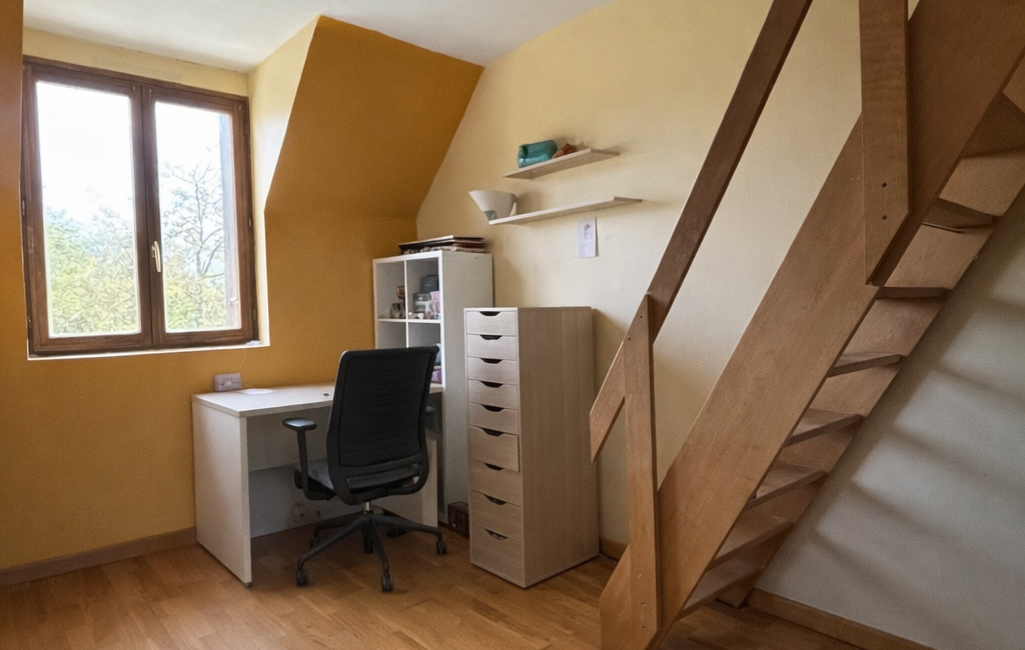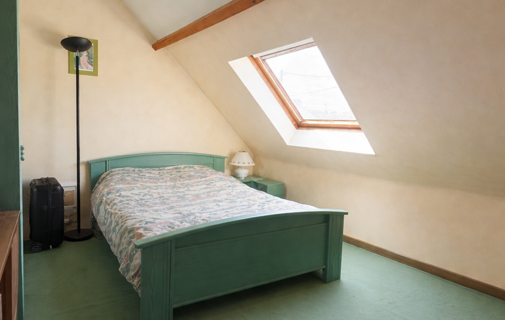 Au rez-de-chaussée, vous trouverez une chambre ainsi qu’une salle d’eau à rénover.