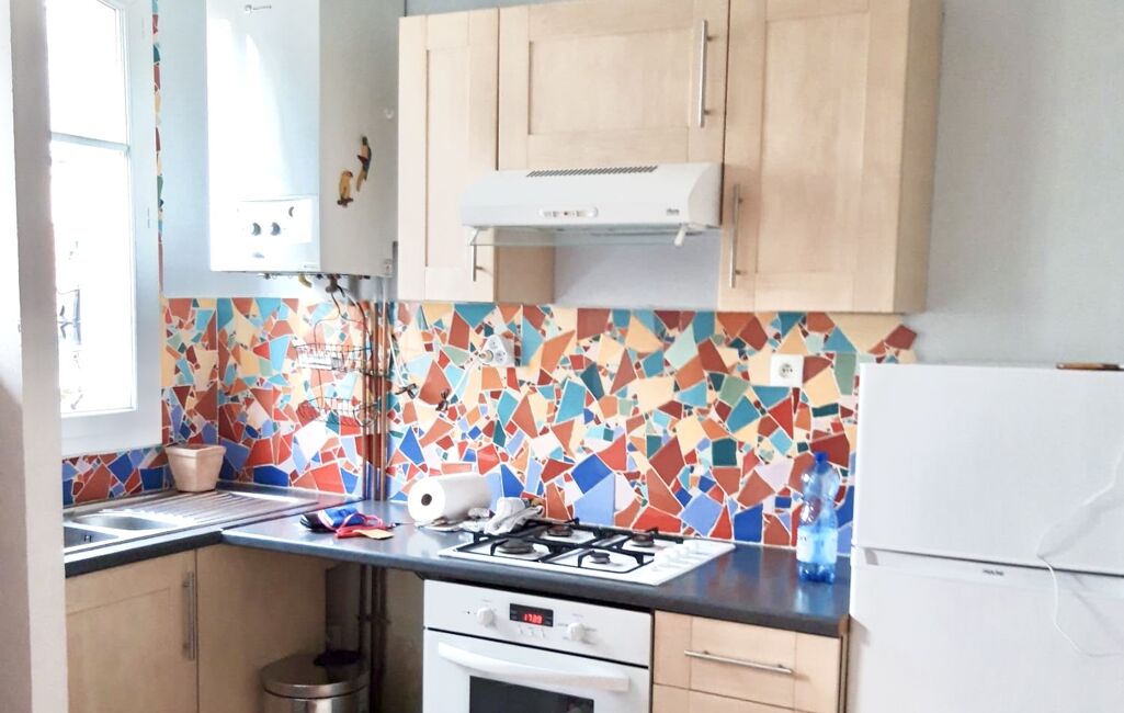 Il se compose d’une entrée, pièce de vie, cuisine ouverte, salle d’eau avec douche, chambre au calme sur cour.