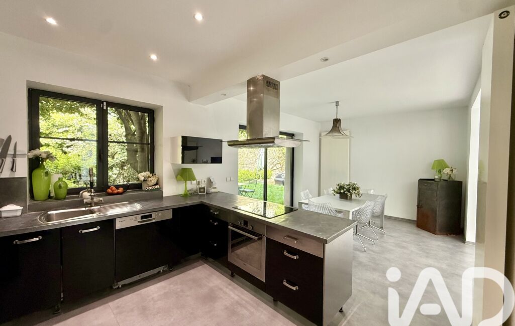 La cuisine est fonctionnelle et offre un accès direct au jardin, idéal pour profiter des belles journées en extérieur.