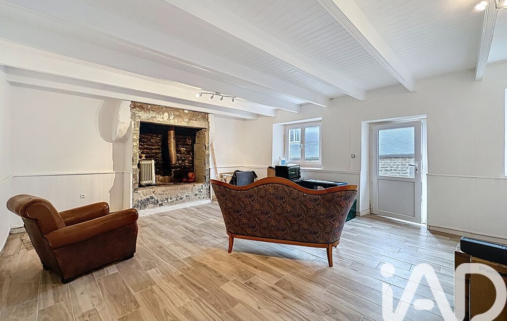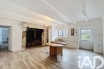 Elle offre une pièce de vie lumineuse avec poutres apparentes et cheminée en pierre,