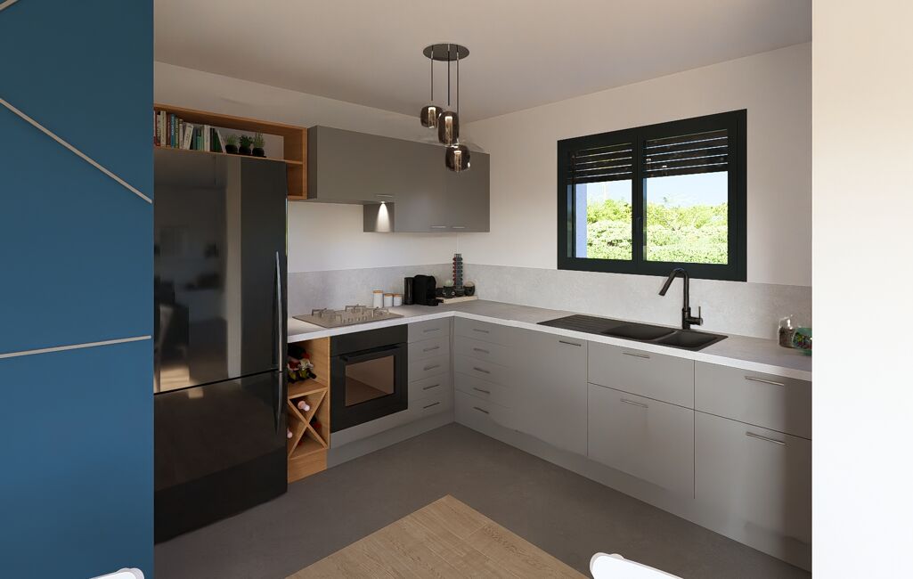 Cette future construction est composée d’une belle pièce de vie de près de 43m², baignée de lumière grâce à sa double orientation. La cuisine semi ouverte se double d’un cellier, indispensable des maisons d’aujourd’hui. Un véritable de gage de fonctionnalité !