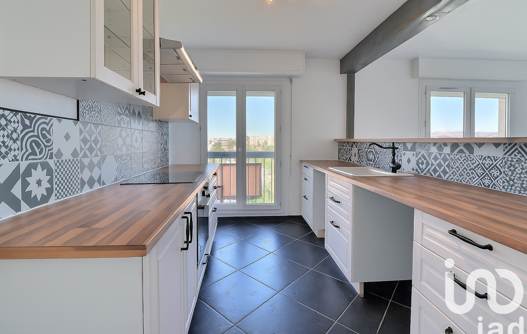 La cuisine semi-ouverte, donne sur le séjour, reste équipée.