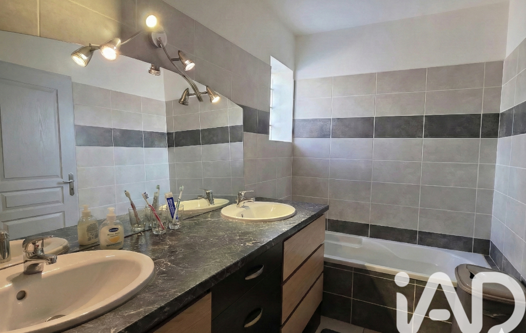 - Salle de bain équipée d'une baignoire et d'une douche.