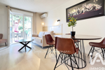 A votre disposition un séjour avec kitchenette équipée donnant sur une grande terrasse, 2 chambres spacieuses, un dressing, une salle d’eau moderne avec son WC, Volets roulants motorisés, climatisation réversible dans le séjour