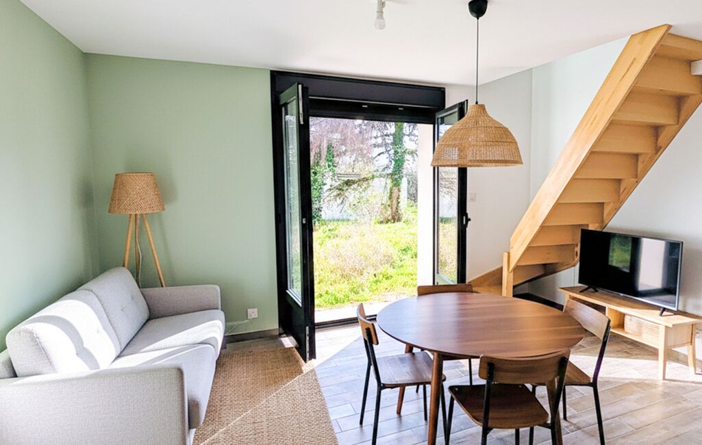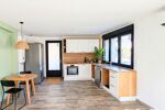 Pièce de vie lumineuse ouverte sur la cuisine,