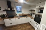 Vous entrez directement dans une SPACIEUSE et LUMINEUSE pièce de vie avec un POÊLE à pellets et incluant une cuisine ouverte aménagée et équipée.