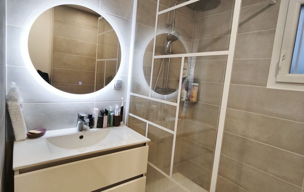Un couloir dessert ensuite un wc séparé, une salle d’eau avec douche à l’italienne, 3 chambres et un bureau.
