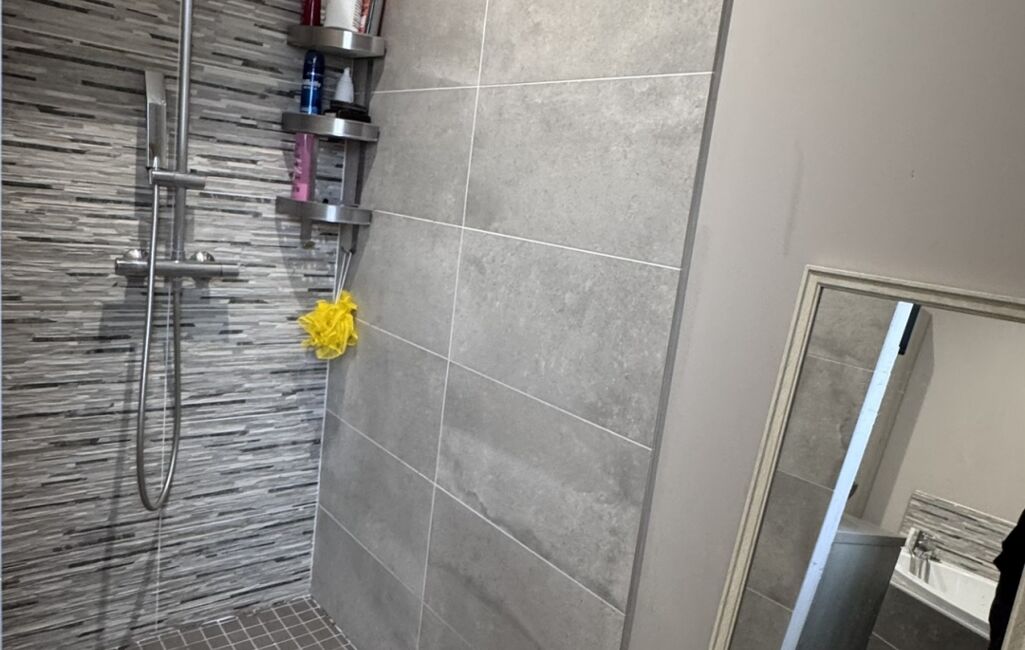 Salle de bains spacieuse : douche à l’italienne + baignoire, WC séparé