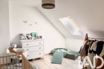 À l’étage, un palier dessert deux chambres et une salle d’eau avec WC.