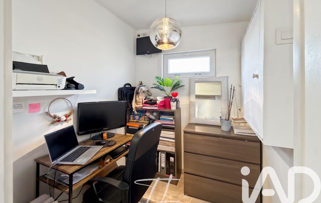 Un espace bureau et une buanderie donnant sur l'extérieur.