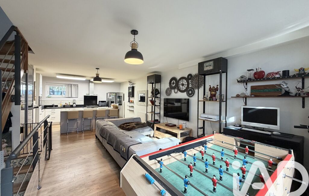 iad France - Christophe Renaudin vous propose: Maison de ville, 4 pièces avec sous-sol, de 84m2 habitables (100 utile) dans une petite copropriété, comprenant au rez-de-chaussée : grande pièce de vie de 40m2 avec une grande baie vitrée de style industrielle, cuisine entièrement aménagée et équipée, et un grand placard.