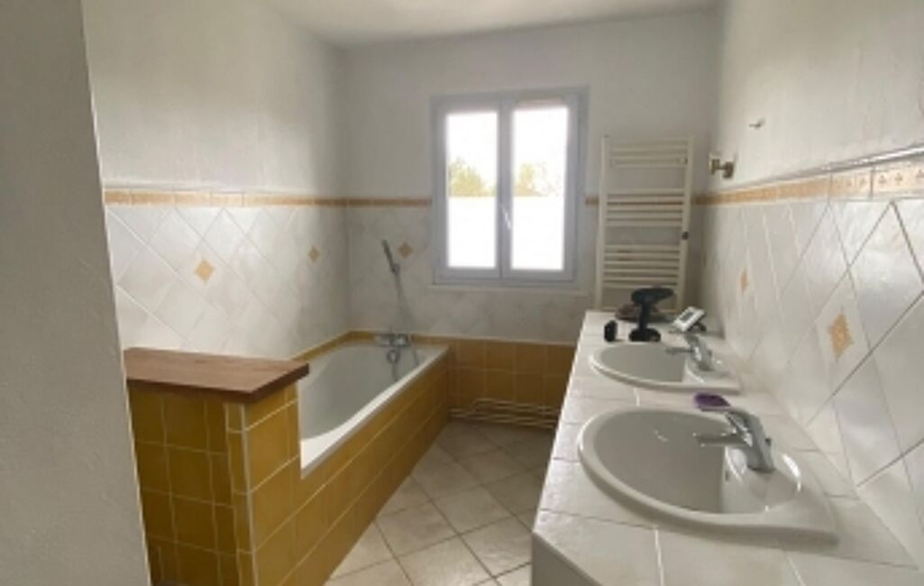 À l’étage, l’espace nuit se compose de quatre chambres, d’un bureau, d’une salle de bains familiale équipée d’une baignoire, d’une douche et de deux vasques, ainsi que d’un WC indépendant.