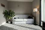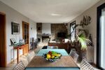 La pièce de vie lumineuse, ouverte sur une terrasse exposée sud-est et sud-ouest, invite à la détente tout au long de la journée.
