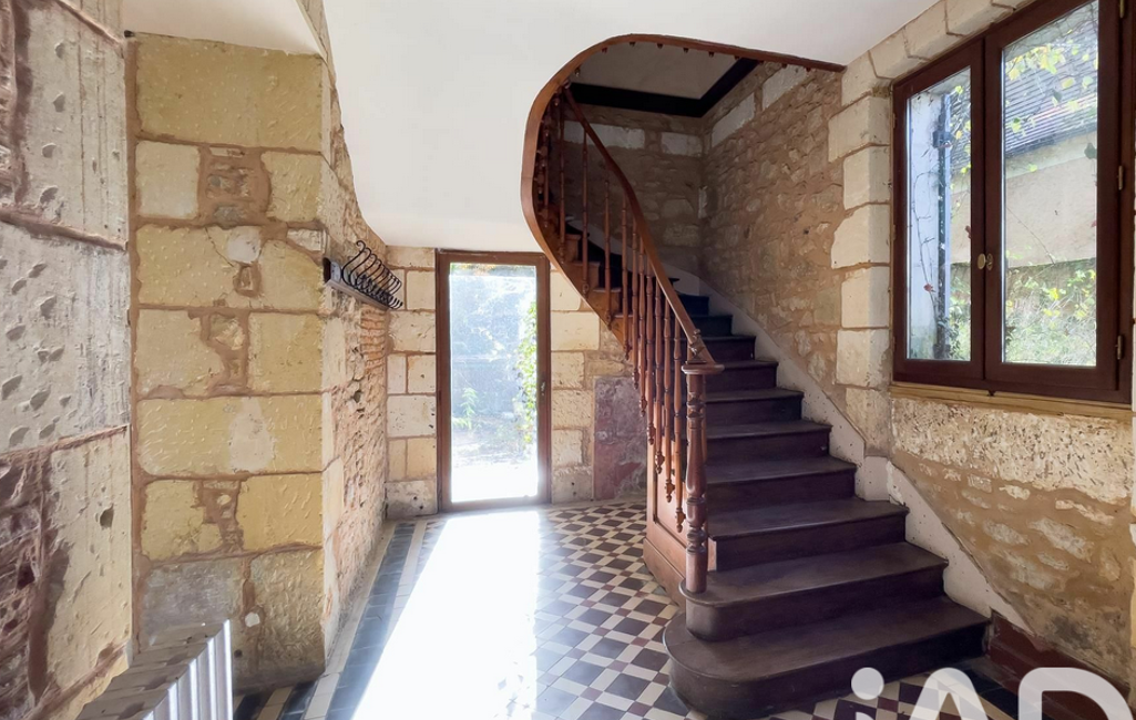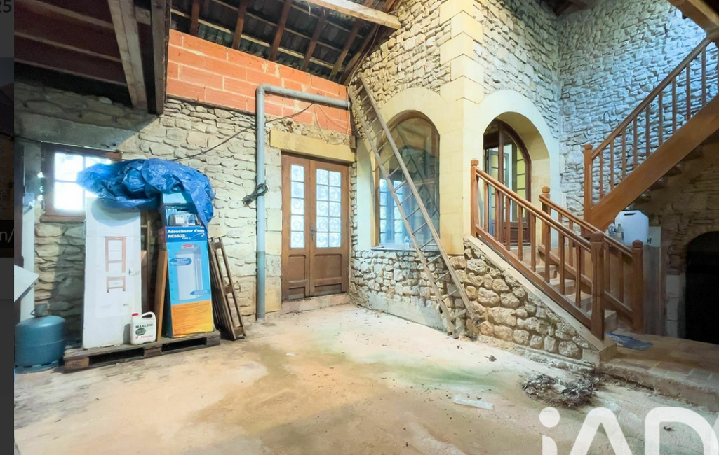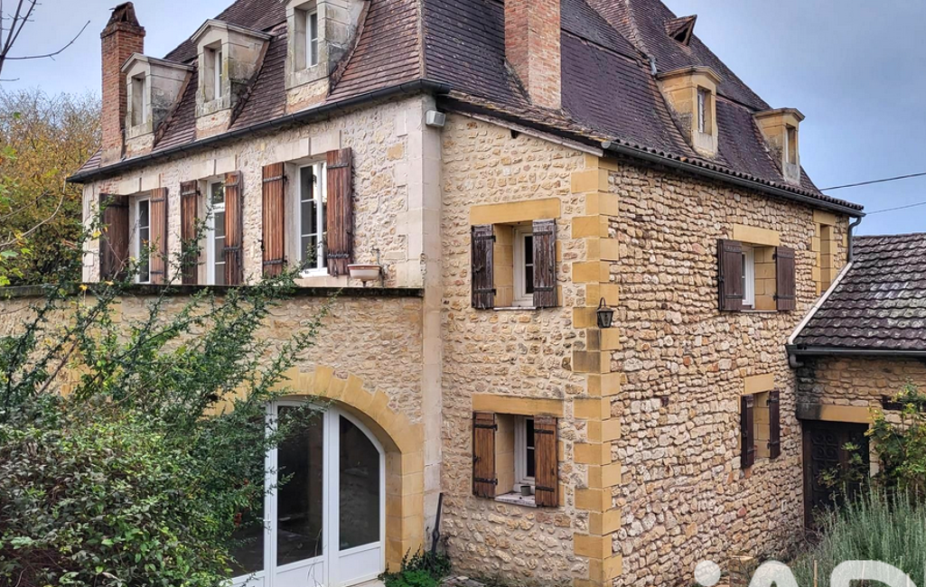 iad France - Françoise Deunf vous propose: En Périgord noir, au calme, non loin des commodités, sur un terrain clos de 1500 m2 environ, sans vis à vis, belle demeure en pierre offrant au rez-de-chaussée : une entrée de 14 m2, une cuisine de 17 m2, un double salon-salle à manger de 55 m2, un cellier, un salon de 40 m2 avec cheminée st sol en carreaux ciments, véranda de 39 m2 , toilettes séparées (possibilité d'une salle d'eau).